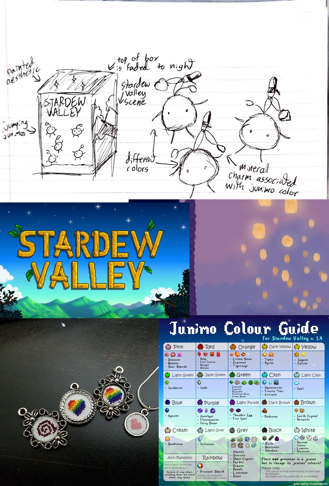 After making the initial sketches for all three concepts and adding the inspiration pictures, I surveyed a couple of friends who had helped me sell the keychains the previous year. Generally, they all agreed that making a packaging design for the keychains that sold best last year was the best path forward. I then created a mood board with a font, colors, and inspiration pictures that matched the general look I was hoping to go with for this package design.