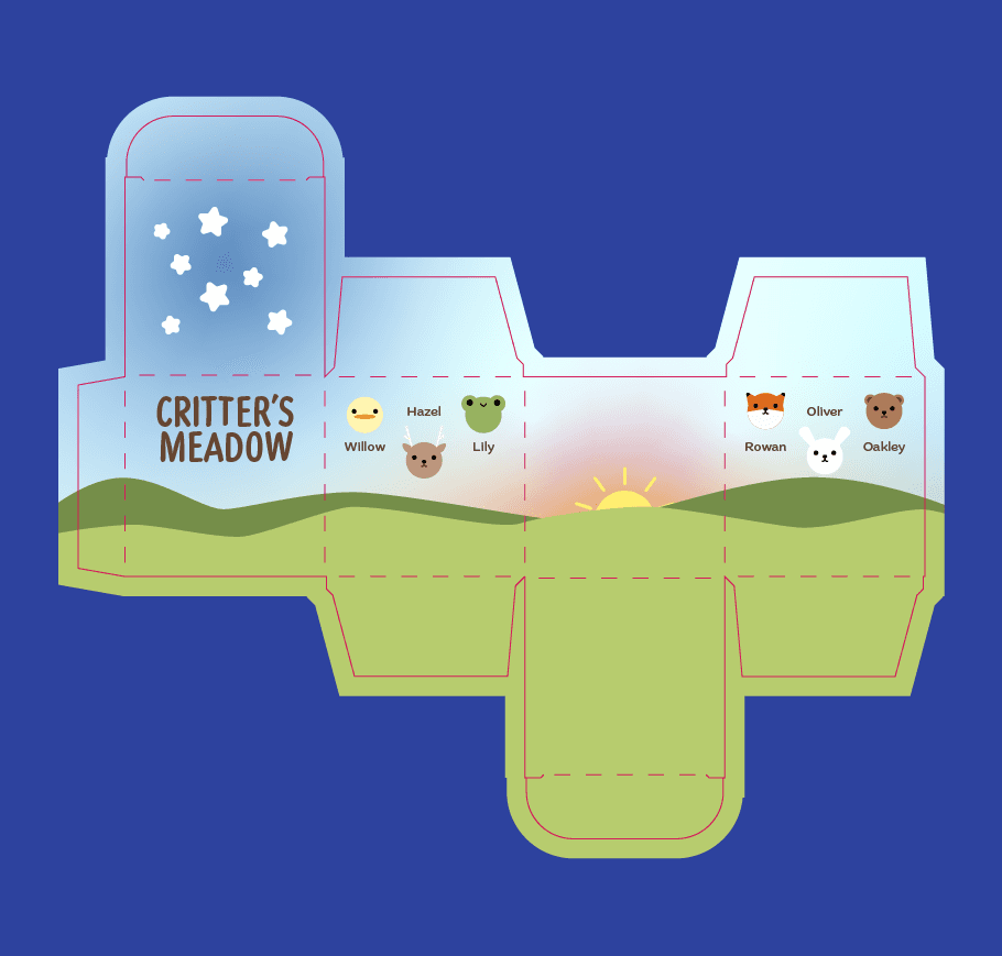 During this part of the process I also made some very minimal changes to the package design to ensure that where the hills ended on the front and side of the package actually lined up when put together.