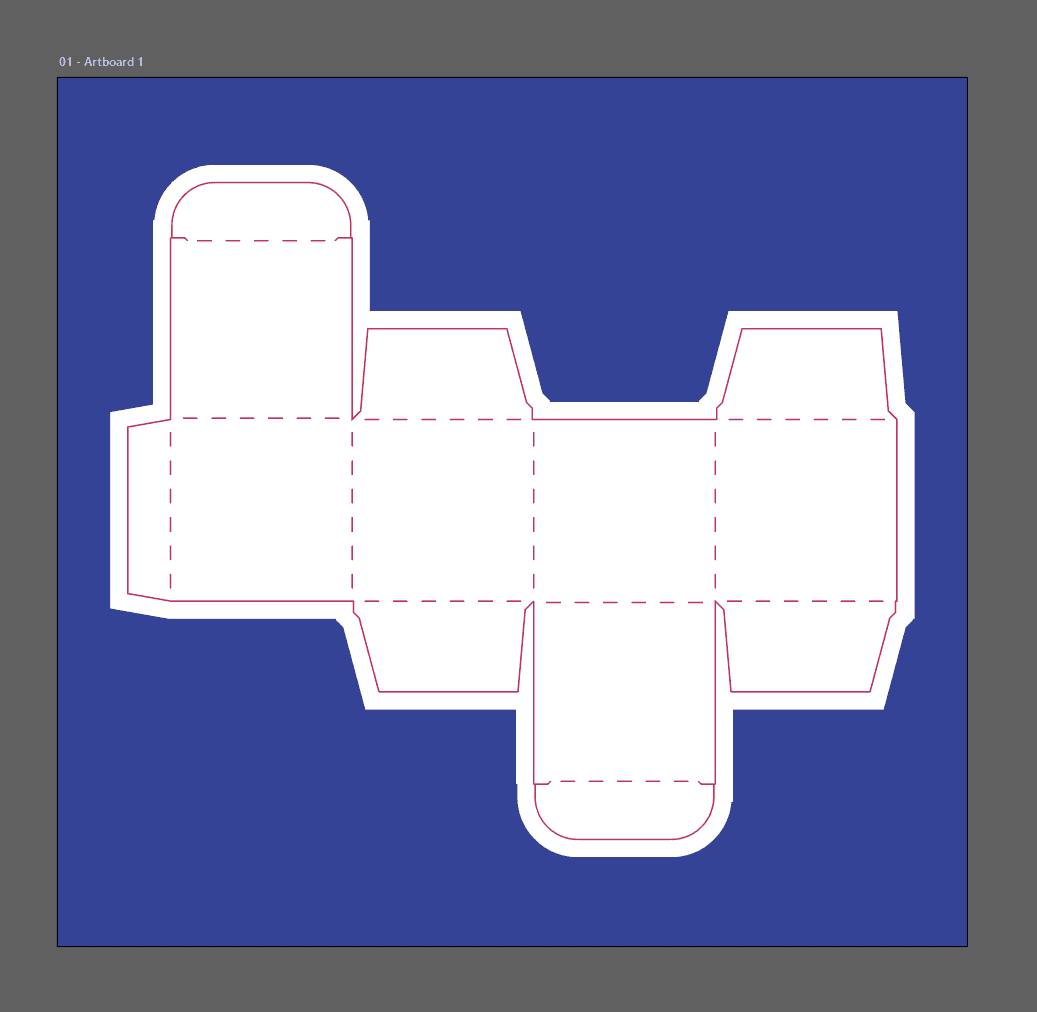 Pictured below is the final dieline after adjustments were made during the mockup process in Blender.